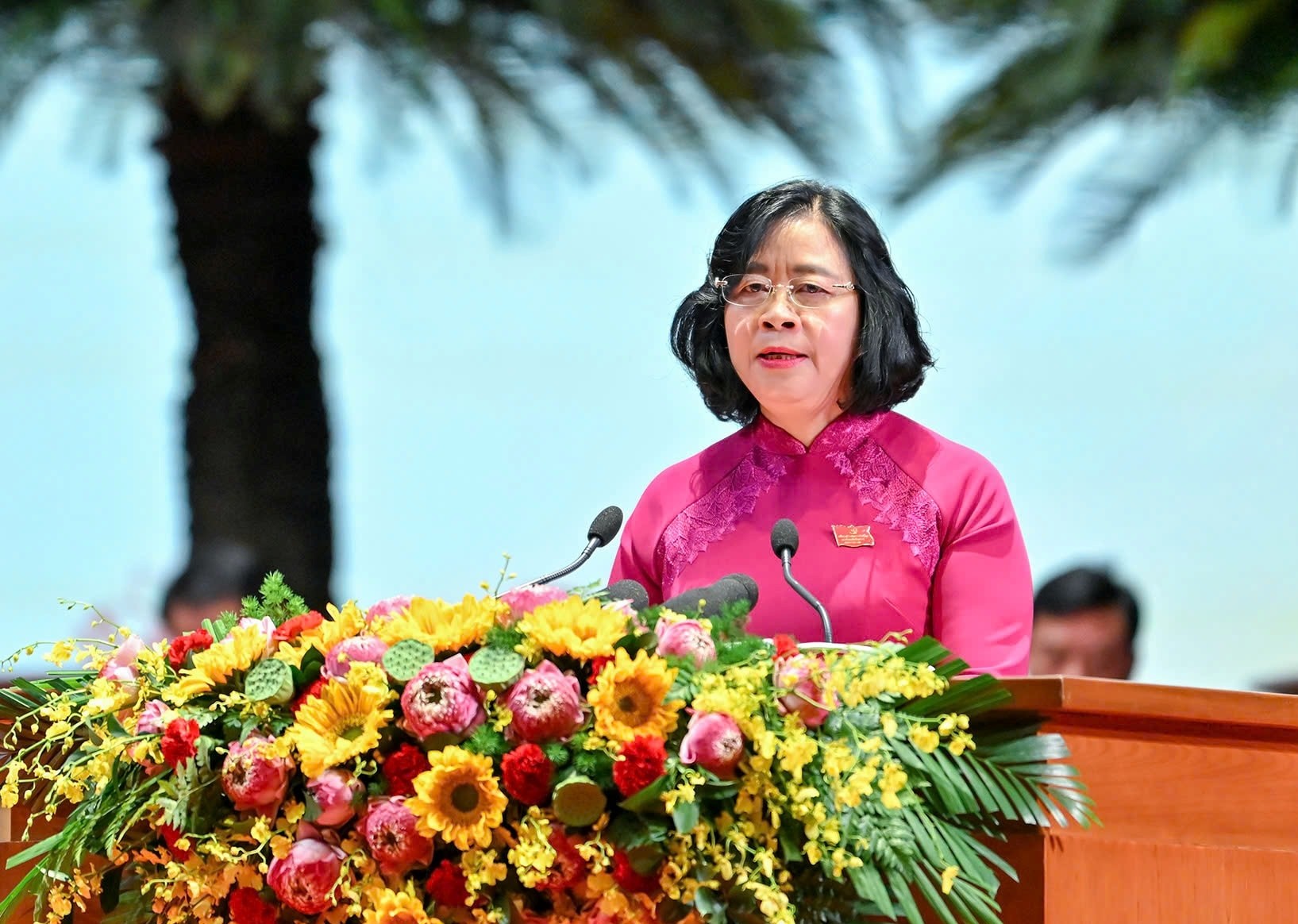 Bí thư Thành ủy Hà Nội Bùi Thị Minh Hoài phát biểu khai mạc Đại hội.