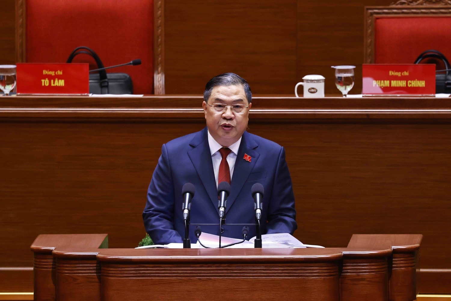 Chánh Văn phòng Trung ương Đảng Phạm Gia Túc, Trưởng đoàn Thư ký thông báo kết quả bầu Đoàn Chủ tịch, Đoàn Thư ký tại phiên họp trù bị. Ảnh: ĐH