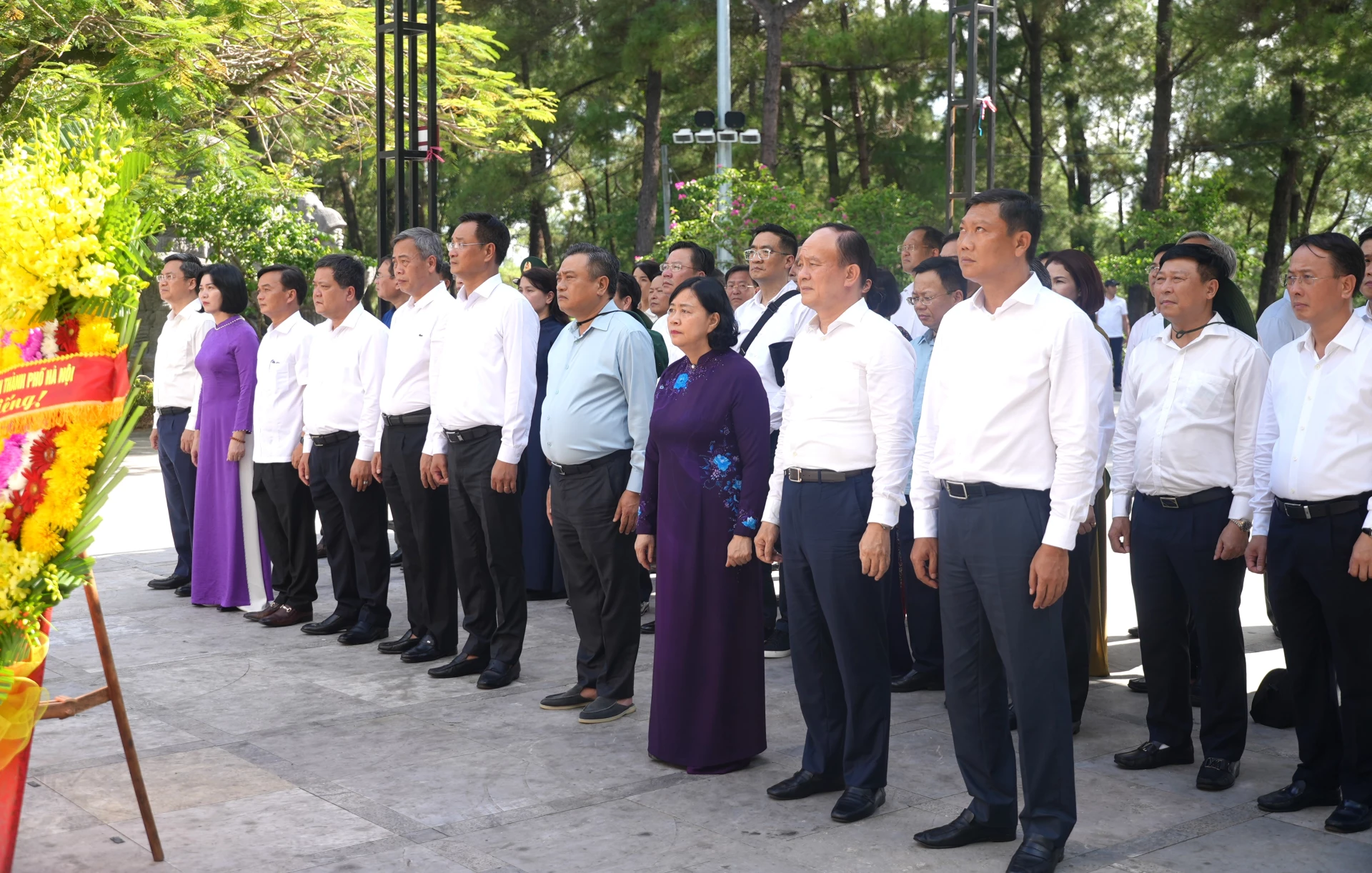 Các đại biểu dâng hương, dâng hoa tại Đài tưởng niệm Nghĩa trang liệt sĩ Quốc gia Trường Sơn