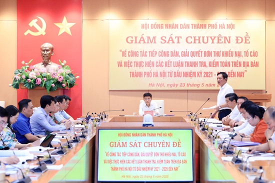 Sáng 23/5/2025, tại trụ sở Đoàn ĐBQH và HĐND Thành phố, Đoàn giám sát của HĐND thành phố Hà Nội do Phó Chủ tịch HĐND thành phố Phạm Quí Tiên làm Trưởng đoàn đã làm việc với Thanh tra thành phố về công tác tiếp công dân, giải quyết đơn thư khiếu nại, tố cáo (KNTC) và việc thực hiện các kết luận thanh tra, kiểm toán trên địa bàn thành phố từ đầu nhiệm kỳ 2021-2026 đến nay.