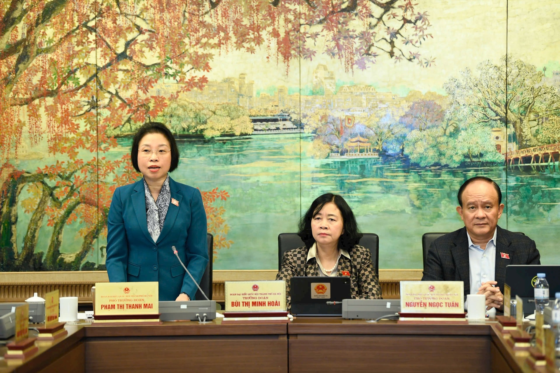 Chủ trì phiên thảo luận tổ tại Đoàn đại biểu Quốc hội thành phố Hà Nội có đồng chí Bùi Thị Minh Hoài, Ủy viên Bộ Chính trị, Bí thư Thành ủy, Trưởng đoàn đại biểu Quốc hội thành phố Hà Nội; đồng chí Nguyễn Ngọc Tuấn, Chủ tịch HĐND thành phố, Phó Trưởng đoàn đại biểu Quốc hội thành phố Hà Nội; đồng chí Phạm Thị Thanh Mai, Phó Chủ tịch HĐND thành phố, Phó Trưởng đoàn Đoàn đại biểu Quốc hội thành phố Hà Nội.