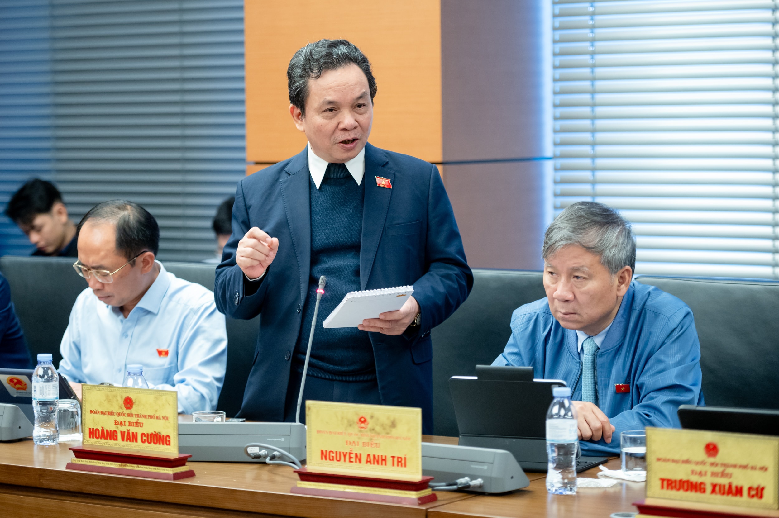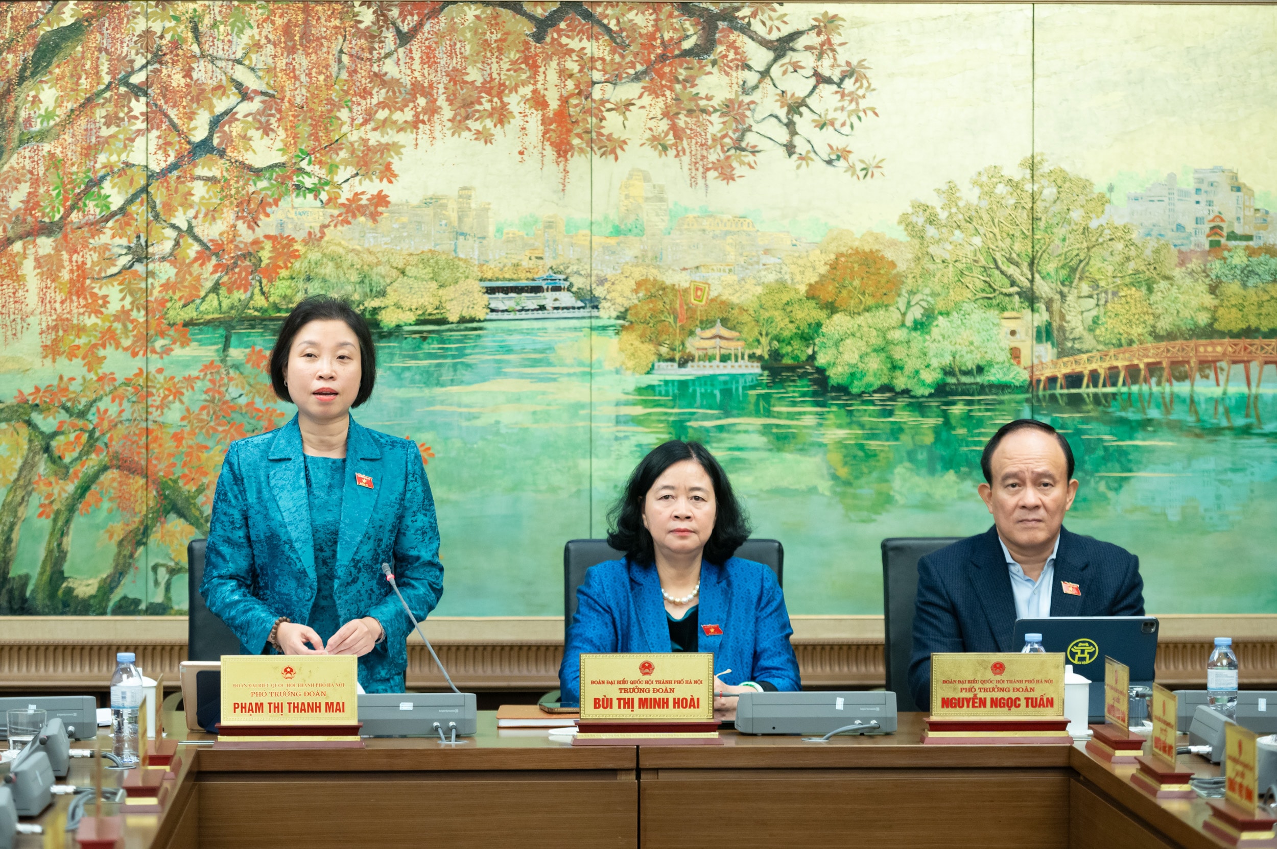 Chủ trì phiên thảo luận tổ tại Đoàn đại biểu Quốc hội thành phố Hà Nội có đồng chí Bùi Thị Minh Hoài, Ủy viên Bộ Chính trị, Bí thư Thành ủy, Trưởng đoàn ĐBQH Thành phố; đồng chí Nguyễn Ngọc Tuấn, Chủ tịch HĐND, Thành phố, Phó Trưởng đoàn ĐBQH Thành phố; đồng chí Phạm Thị Thanh Mai, Phó Chủ tịch HĐND Thành phố, Phó Trưởng đoàn ĐBQH Thành phố.