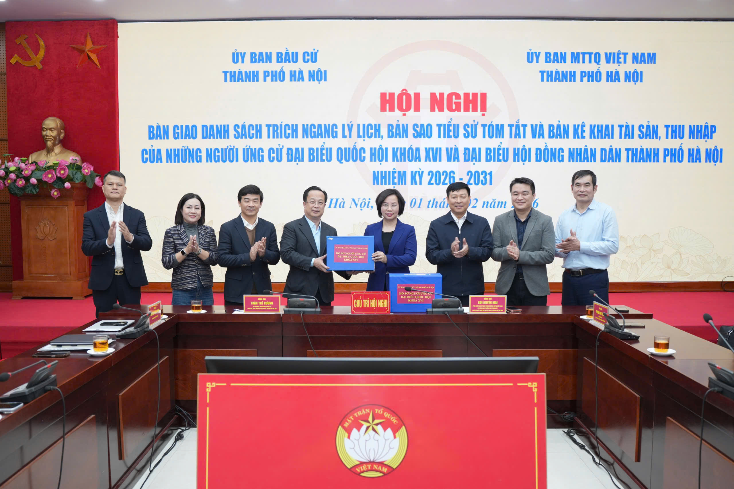 20h00 ngày 01/02/2026, tại Trụ sở Ủy ban Mặt trận Tổ quốc Việt Nam thành phố Hà Nội đã diễn ra Hội nghị bàn giao danh sách trích ngang lý lịch, bản sao tiểu sử tóm tắt và bản kê khai tài sản, thu nhập của những người ứng cử đại biểu Quốc hội khóa XVI và đại biểu Hội đồng nhân dân thành phố Hà Nội nhiệm kỳ 2026-2031.