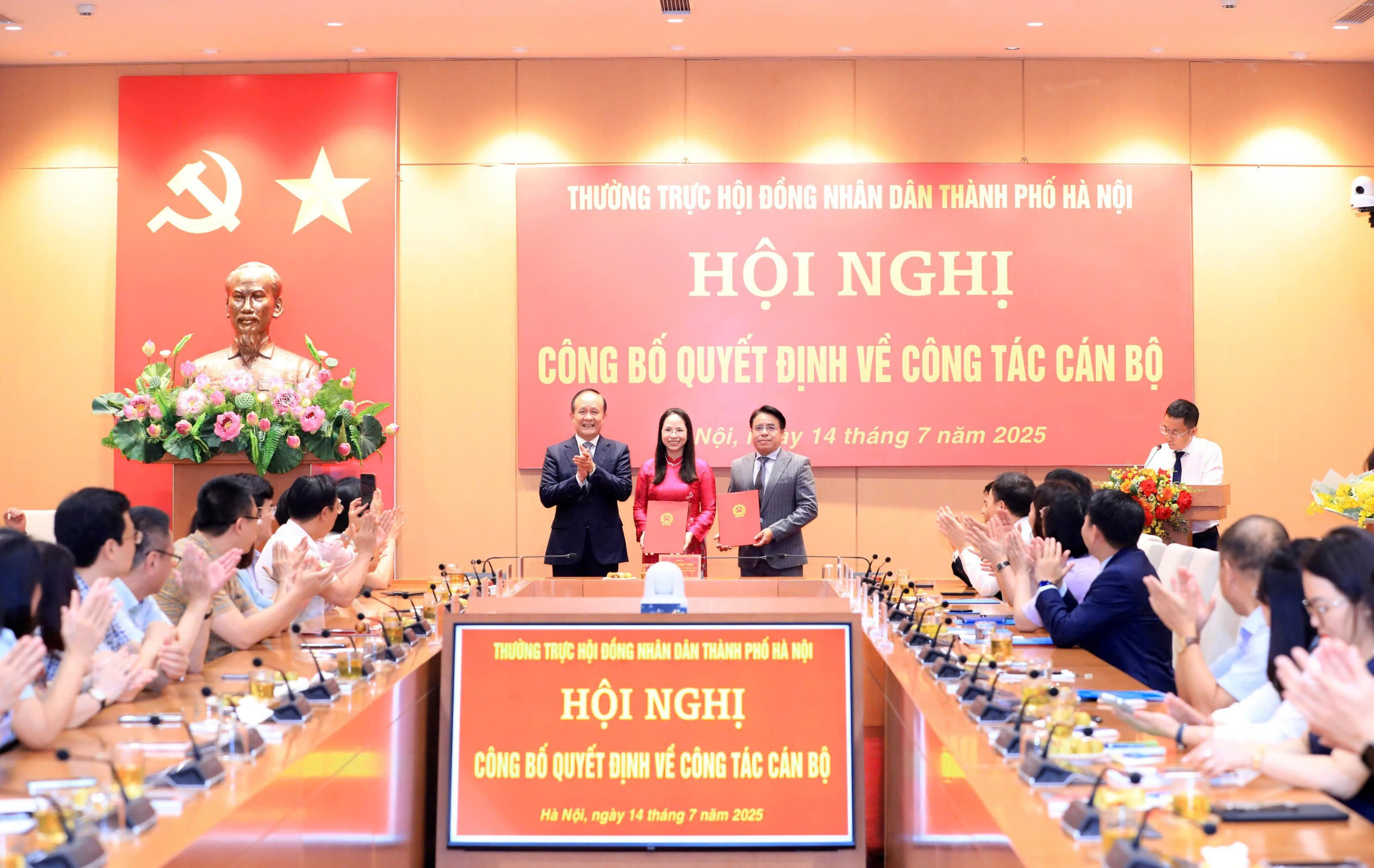 Chiều 14/7/2025, Thường trực HĐND thành phố Hà Nội tổ chức hội nghị công bố các quyết định và nghị quyết về công tác cán bộ của HĐND thành phố.