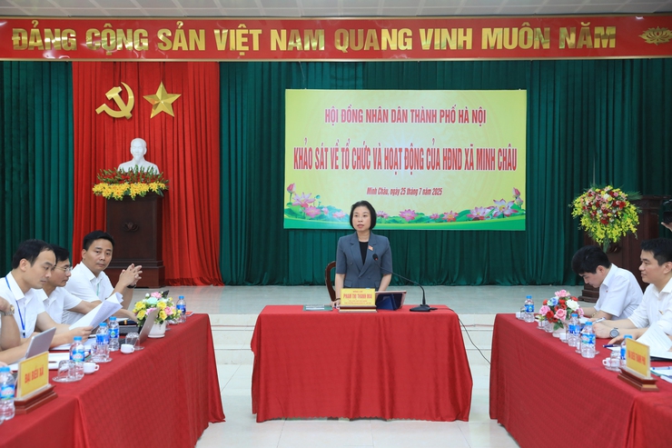 Chiều 25/7/2025, đoàn khảo sát của Thường trực HĐND thành phố Hà Nội phối hợp với Đoàn ĐBQH Thành phố đã tổ chức làm việc về tổ chức và hoạt động của HĐND xã Minh Châu.