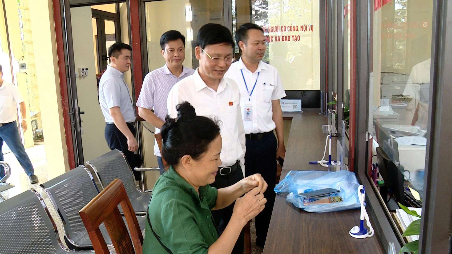 Ngay sau buổi làm việc, đoàn đã đi khảo sát hoạt động tại trung tâm phục vụ hành chính công của xã.