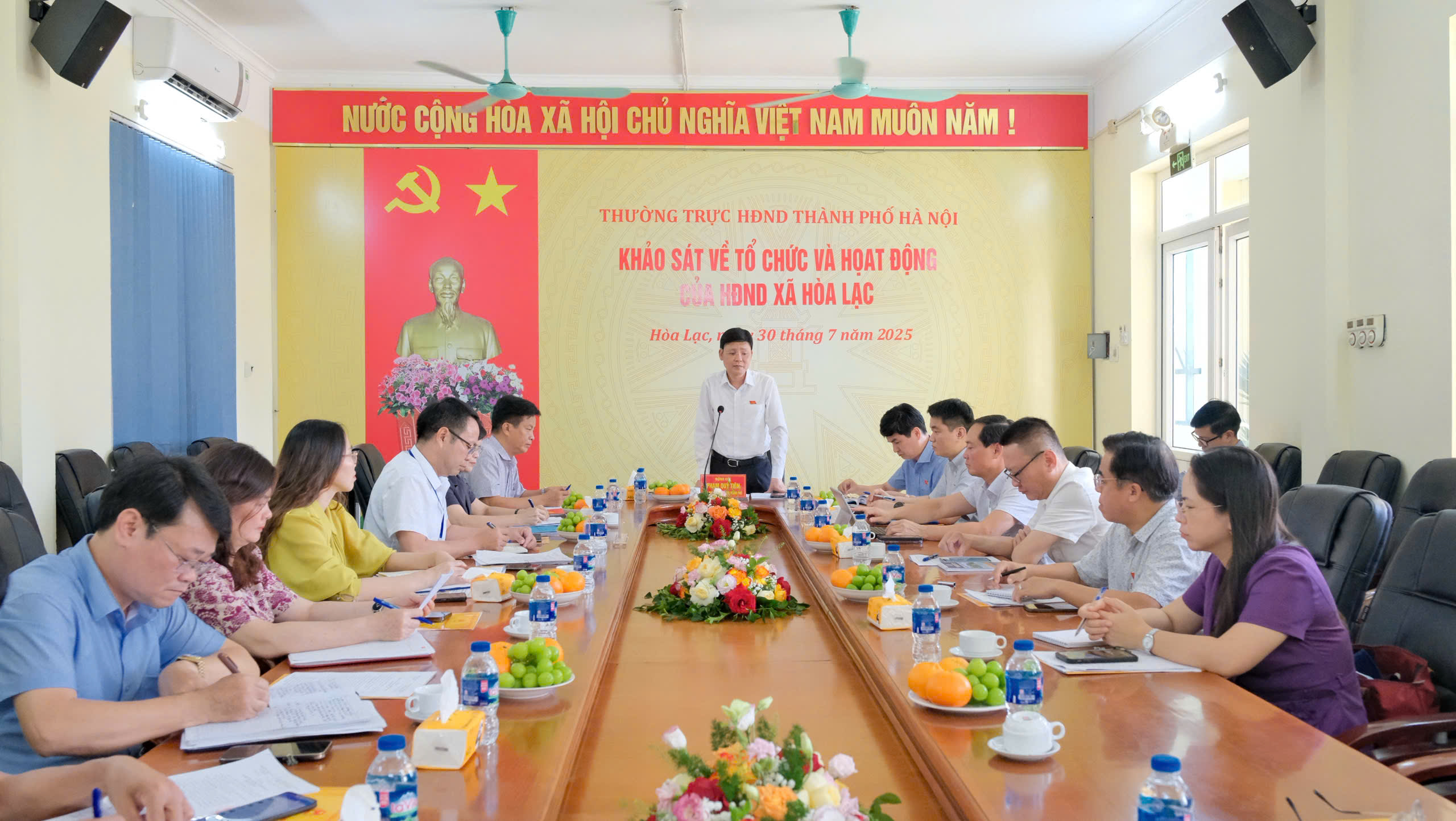 Chiều 30/7/2025, Đoàn khảo sát của Thường trực HĐND thành phố Hà Nội do Phó Chủ tịch HĐND thành phố Phạm Quí Tiên làm Trưởng đoàn đã làm việc với xã Hòa Lạc về tổ chức và hoạt động của HĐND xã.