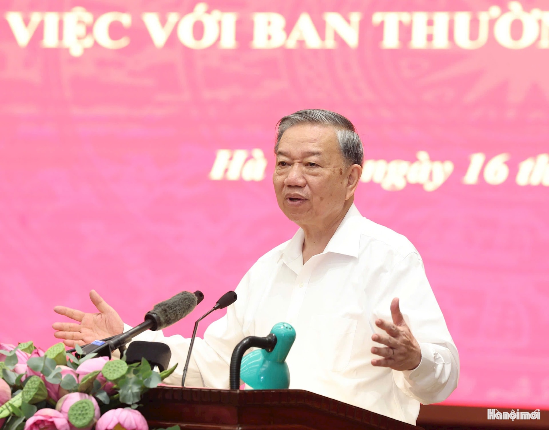 Sáng 16/6/2025, Tổng Bí thư Tô Lâm đã làm việc với Ban Thường vụ Thành ủy Hà Nội về tình hình, kết quả thực hiện các kết luận, nghị quyết của Trung ương, việc sắp xếp đơn vị hành chính, 2 thông báo kết luận của Tổng Bí thư tại các cuộc làm việc trước, việc thực hiện mục tiêu tăng trưởng kinh tế, bảo đảm an sinh xã hội…