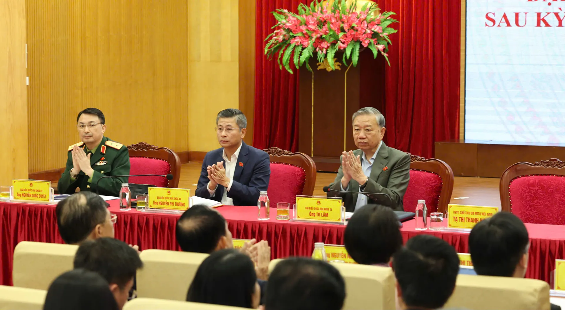 Thay mặt Tổ đại biểu Quốc hội phát biểu tại hội nghị, Tổng Bí thư Tô Lâm nhận định, đợt tiếp xúc cử tri lần này là đợt tiếp xúc cử tri cuối cùng của nhiệm kỳ Quốc hội khóa XV, nên vừa có sự phấn khởi vừa có những băn khoăn trước một nhiệm kỳ Quốc hội mới, với 3 nhiệm vụ rất quan trọng mà Nhân dân đang mong chờ, đó là ổn định đất nước và bảo vệ Tổ quốc, phát triển đất nước, tiếp tục nâng cao đời sống của Nhân dân.
