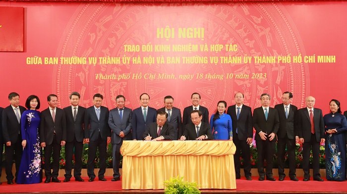 Tại Hội nghị, Ủy viên Bộ Chính trị, Bí thư Thành ủy thành phố Hồ Chí Minh Nguyễn Văn Nên và Ủy viên Bộ Chính trị, Bí thư Thành ủy, Trưởng đoàn Đại biểu Quốc hội thành phố Hà Nội Đinh Tiến Dũng đã ký kết Biên bản ghi nhớ giữa Ban Thường vụ Thành ủy Hà Nội và Ban Thường vụ Thành ủy thành phố Hồ Chí Minh giai đoạn 2023 - 2025 và phương hướng những năm tiếp theo về 10 nội dung trọng tâm.
