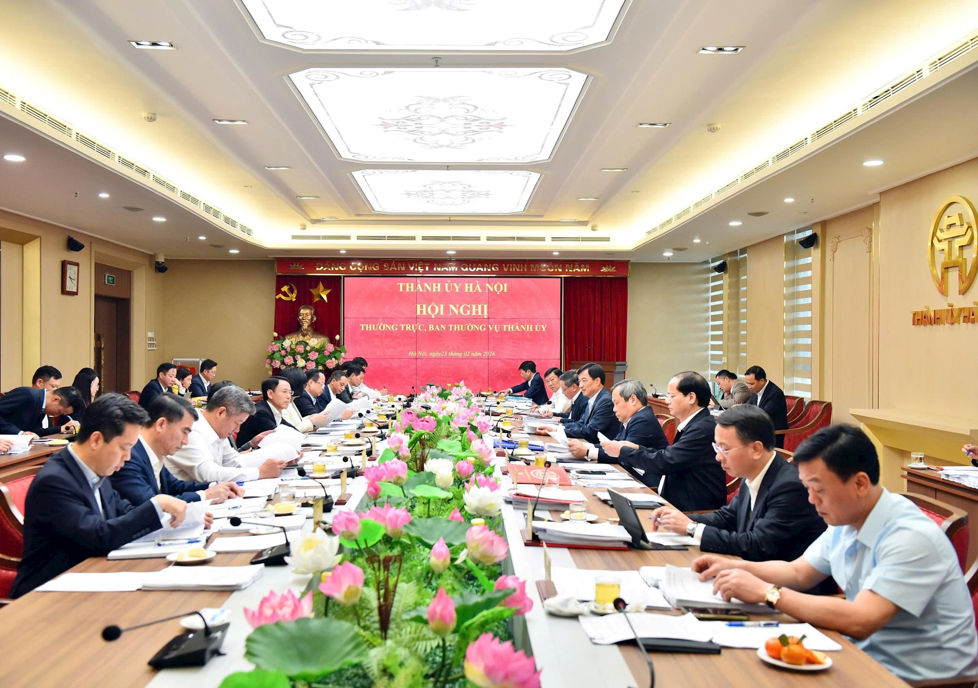 Chiều 23/02/2026, tại trụ sở Thành ủy, Ban Thường vụ Thành ủy Hà Nội tổ chức họp nghe báo cáo về tình hình, kết quả tổ chức phục vụ nhân dân đón Tết Nguyên đán Bính Ngọ năm 2026.