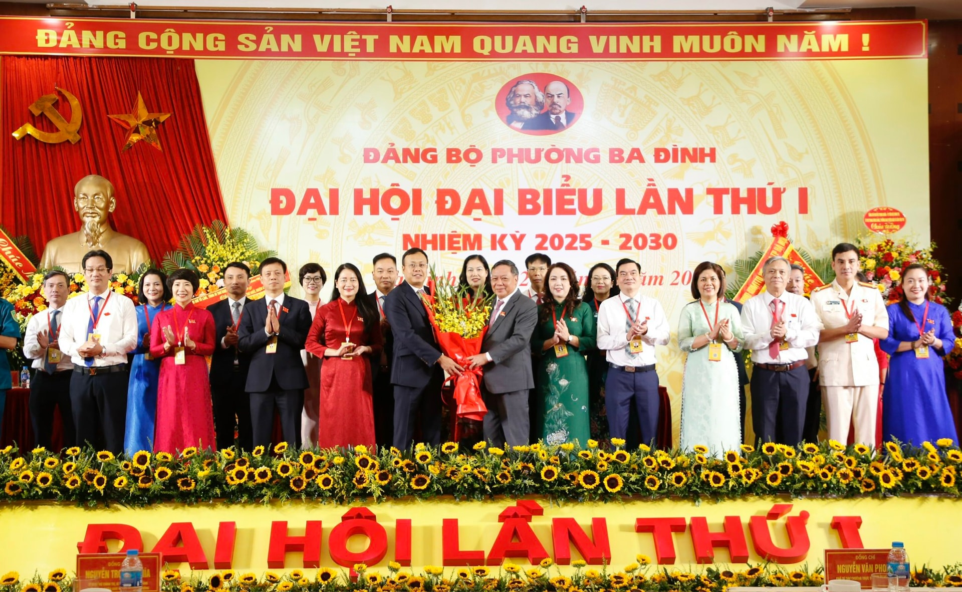 Lãnh đạo TP Hà Nội tặng hoa chúc mừng Ban Chấp hành Đảng bộ phường Ba Đình nhiệm kỳ 2025 - 2030.